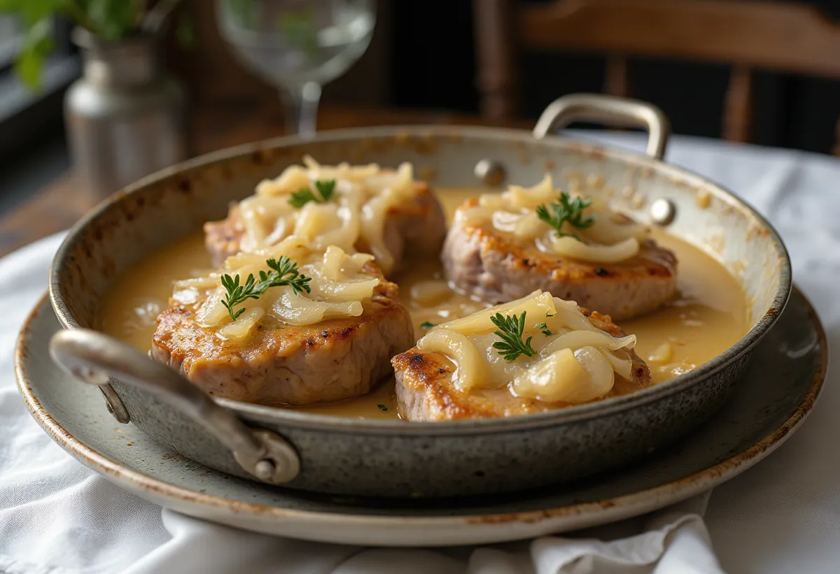Svinestek i løk- og rømmesaus